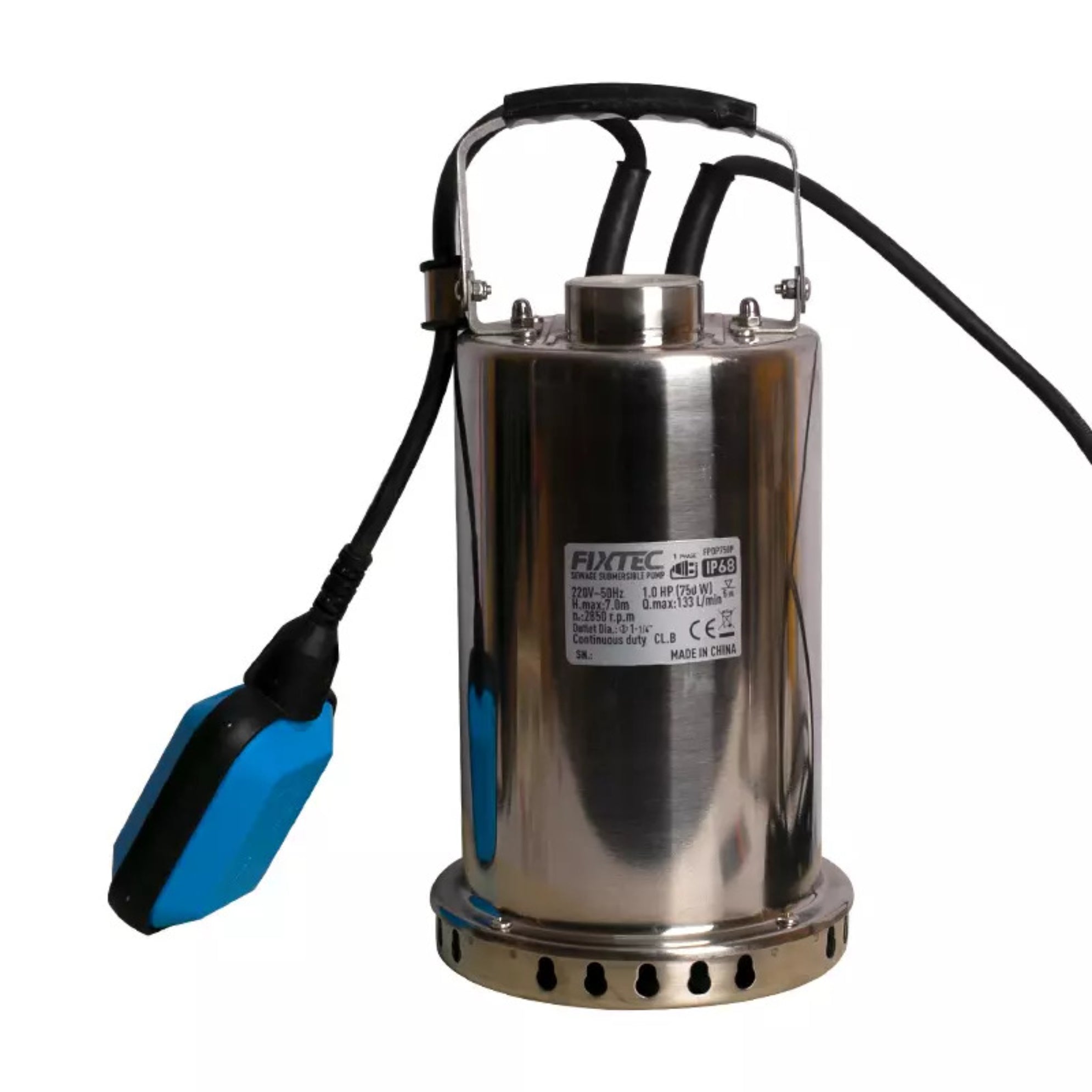 Bomba Sumergible Fixtec 0.5 HP (370W) para Aguas Residuales – 108 L/min